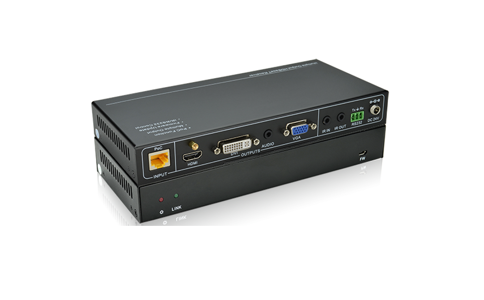 1. 1路HDBaseT输入,1路HDMI输出,1路DVI输出,1路VGA输出;